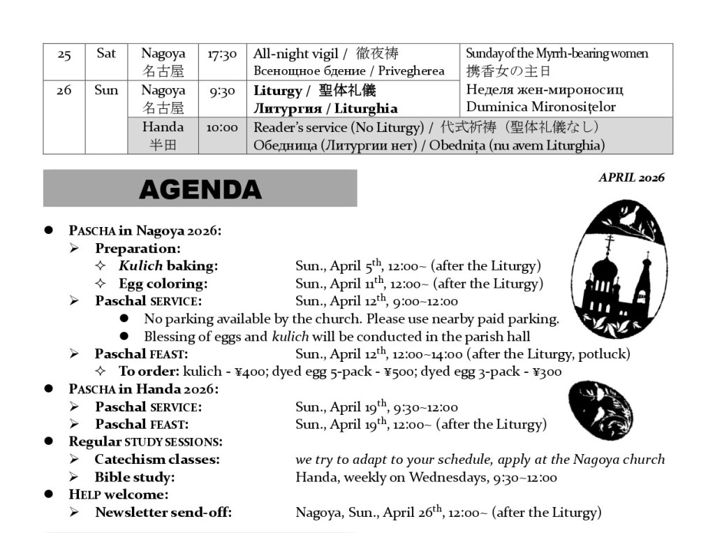 名古屋・半田両教会の皆さんが対象です。自由に参加下さい。未信徒の方もお誘いを!